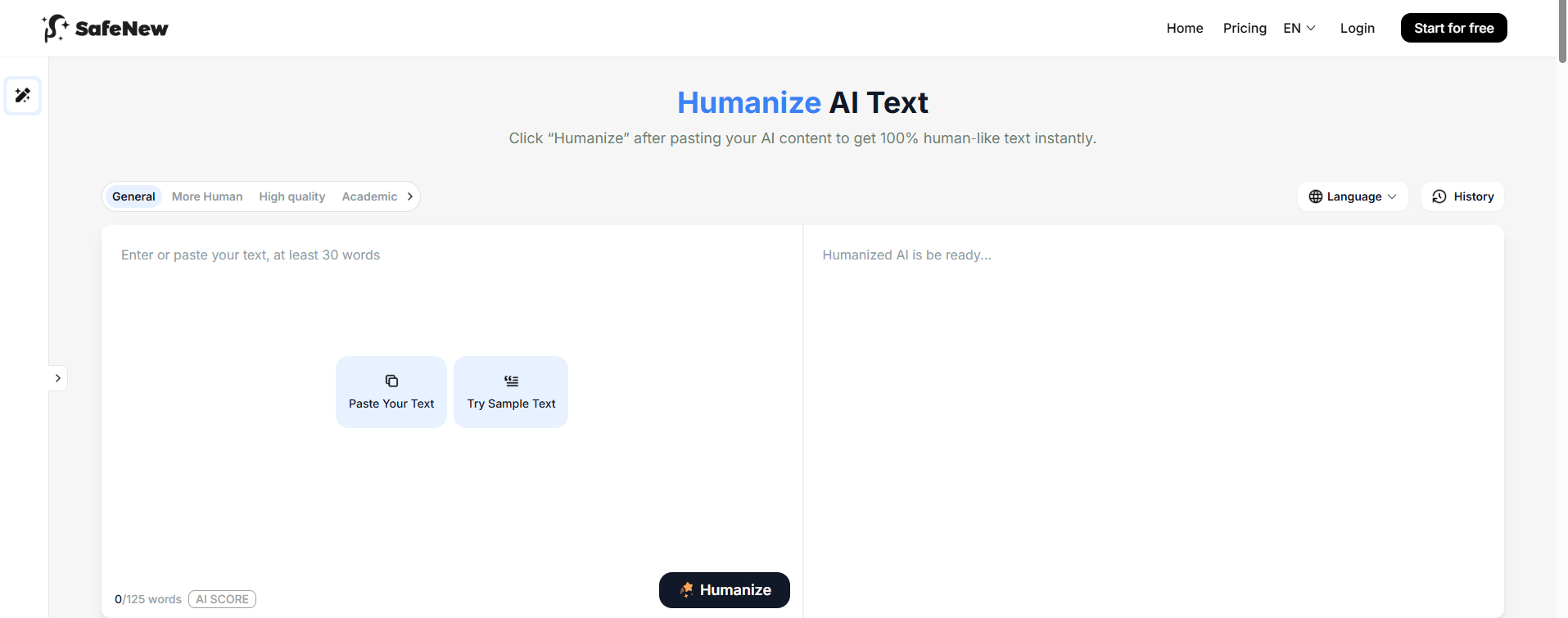 SafeNew AI – AI-Powered Tool for Humanizing AI-Generated Text: Fast, Natural-Language, Polished & Publish-Ready!