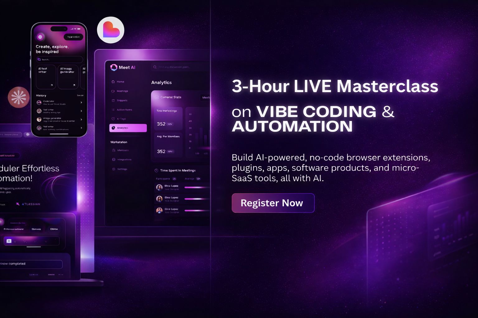 In this 3-hour live Masterclass, you’ll learn a proven workflow to ship real products — browser extensions, mobile apps, plugins, and micro-SaaS — using AI tools like Lovable, Bolt, Cursor, Replit, Claude, Supabase, and more.