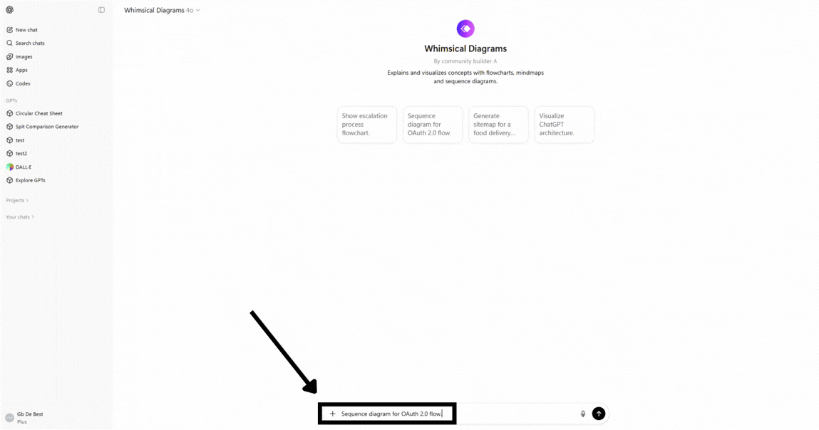 In the GPTs section, search for and open Whimsical Diagrams and click on star chat. This GPT is designed to explain and visualize concepts using flowcharts, mind maps, and sequence diagrams.