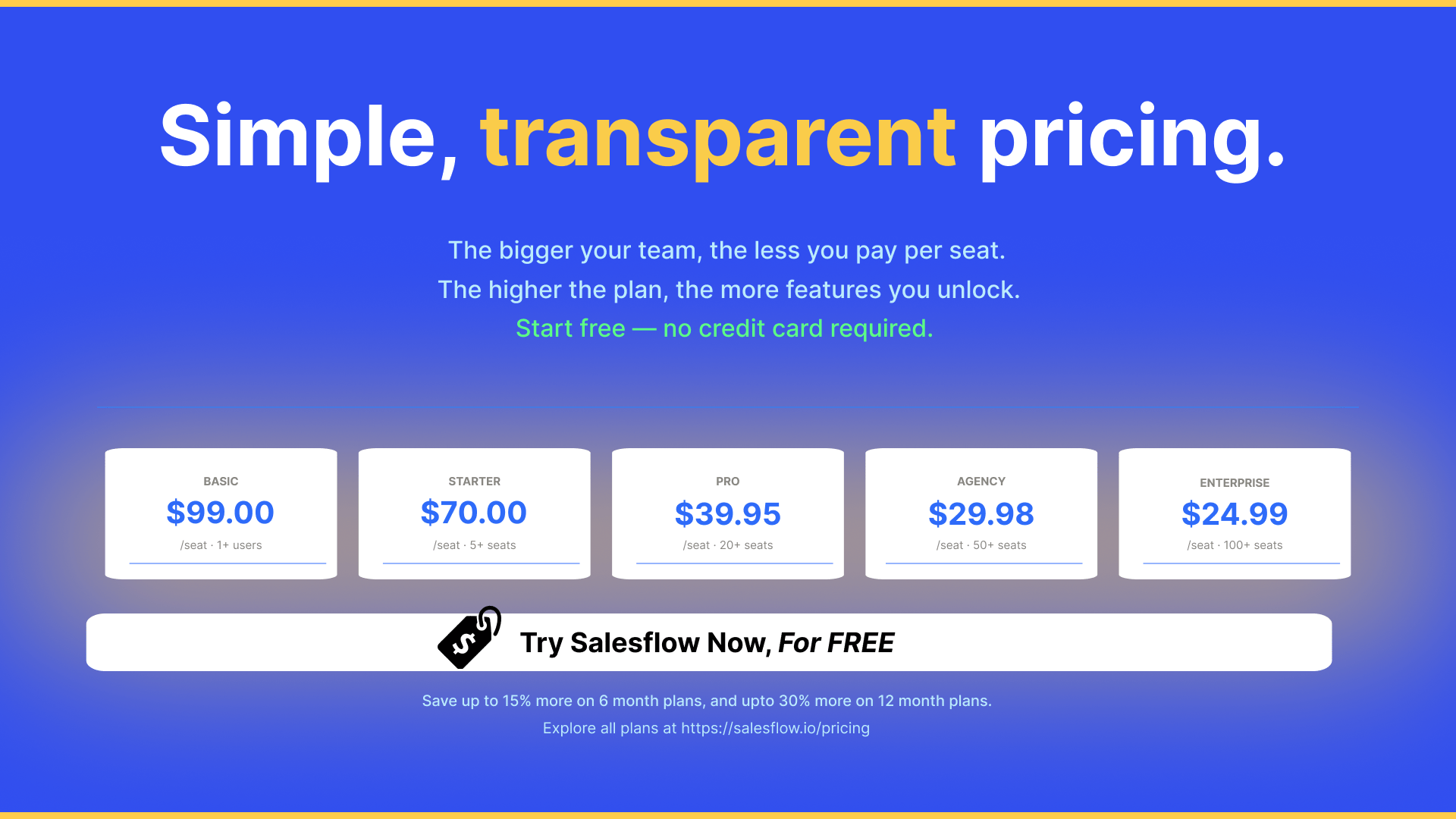 Your cost per seat drops from $99 β $24.99 as your team scales.