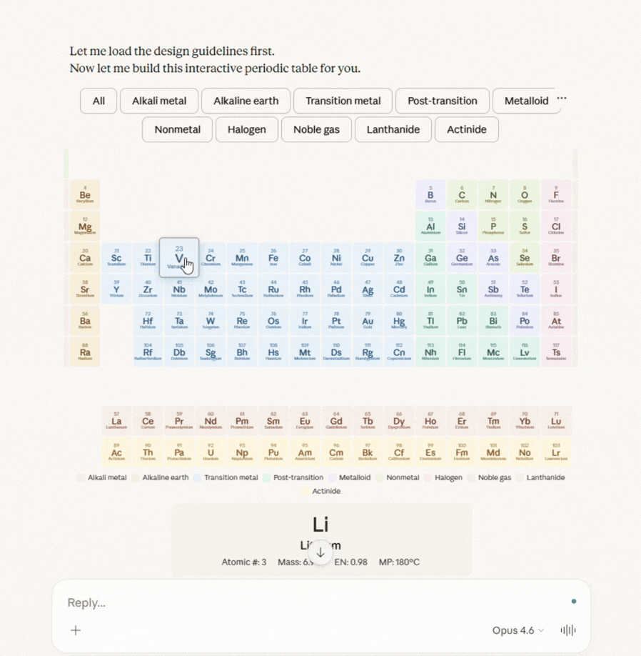 Claude can generate a clickable periodic table that lets you explore elements directly in chat.
