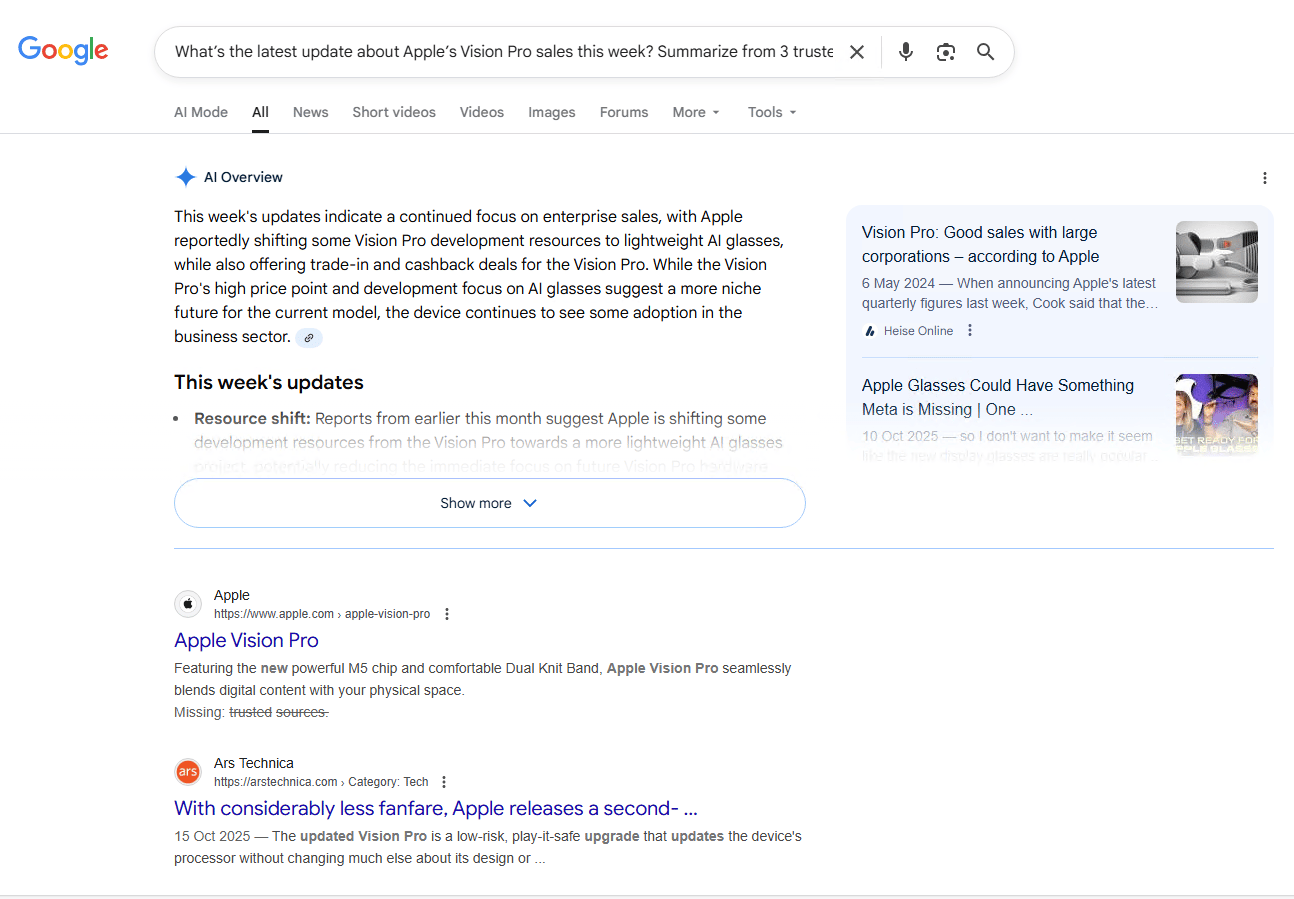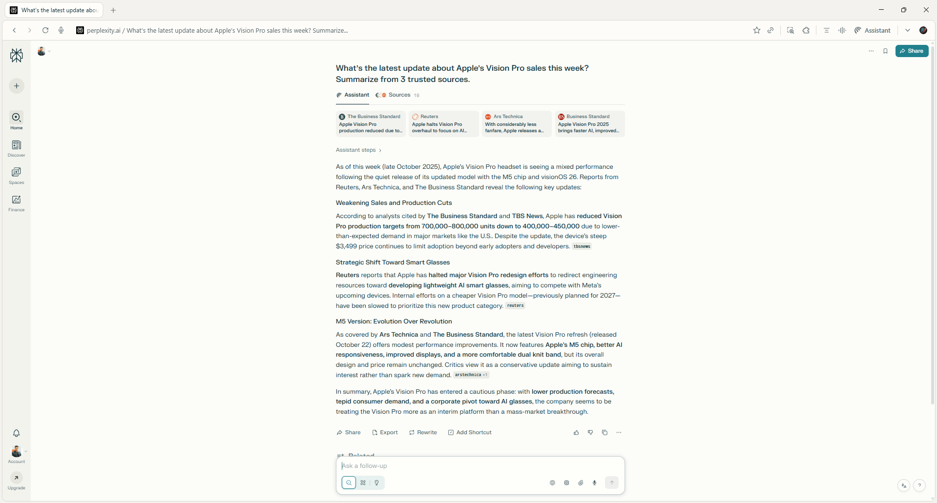 What’s the latest update about Apple’s Vision Pro sales this week? Summarize from 3 trusted sources.