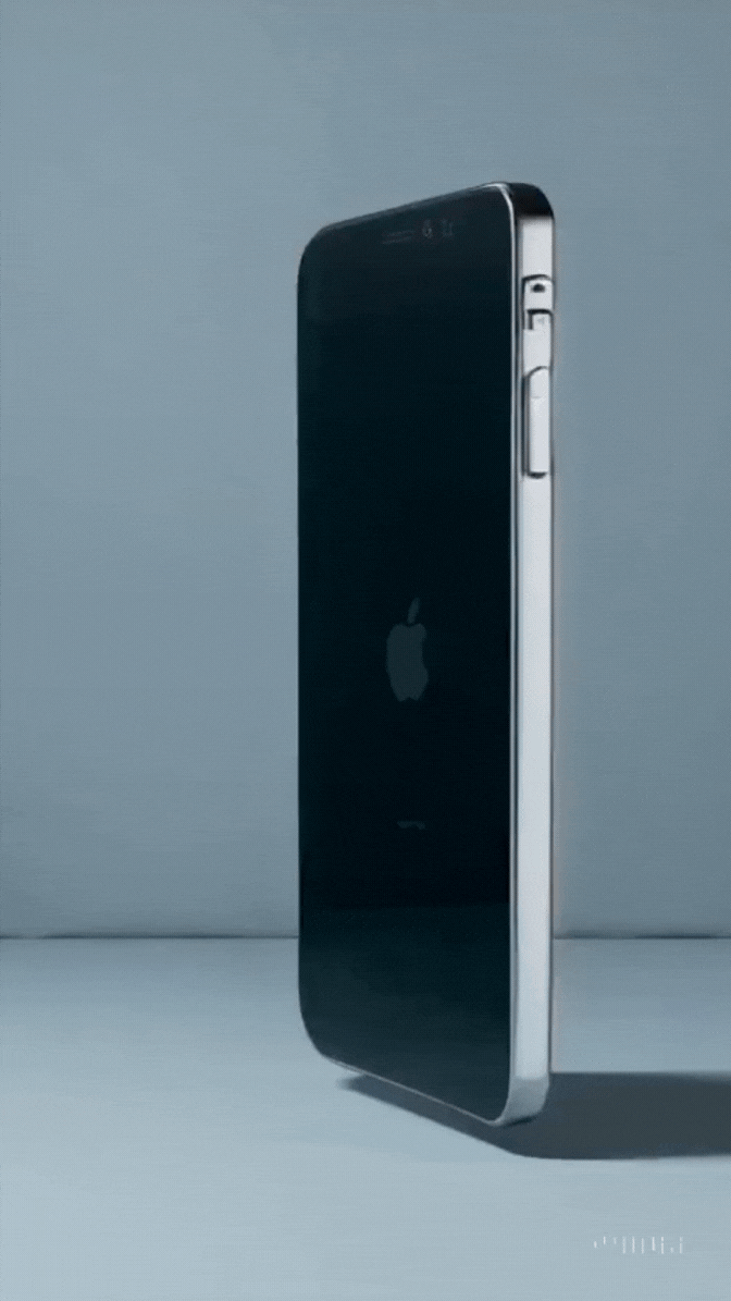 Create a 10-second product demo video of a new iPhone-style smartphone rotating on a pure white background with soft studio shadows.