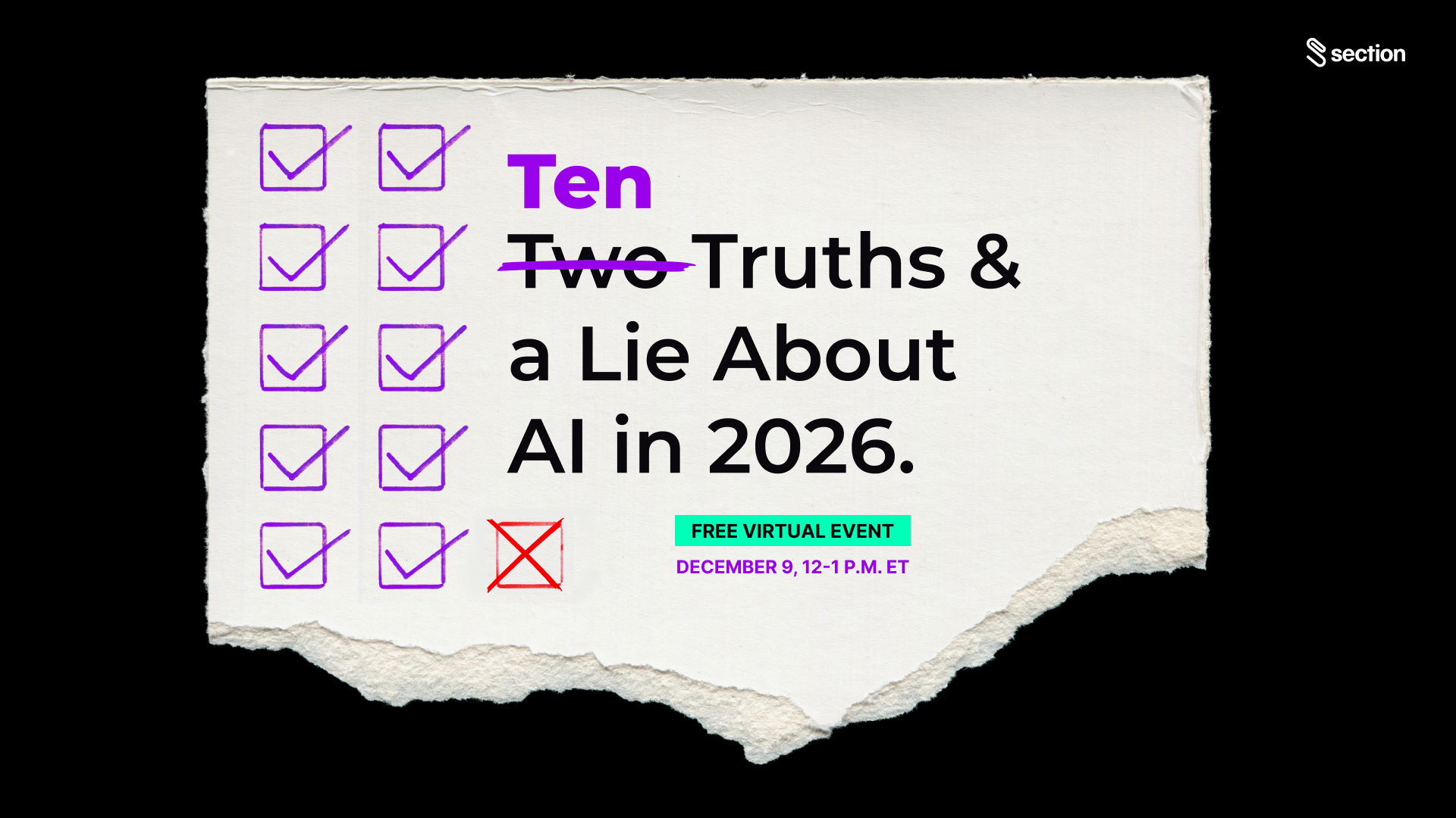 On December 9, join Greg Shove, Section CEO, for an inside conversation about AI strategy (one typically reserved for Section enterprise clients). He’ll be sharing the trends he’s already seeing in organizations, and what makes or breaks successful AI investments within a company.