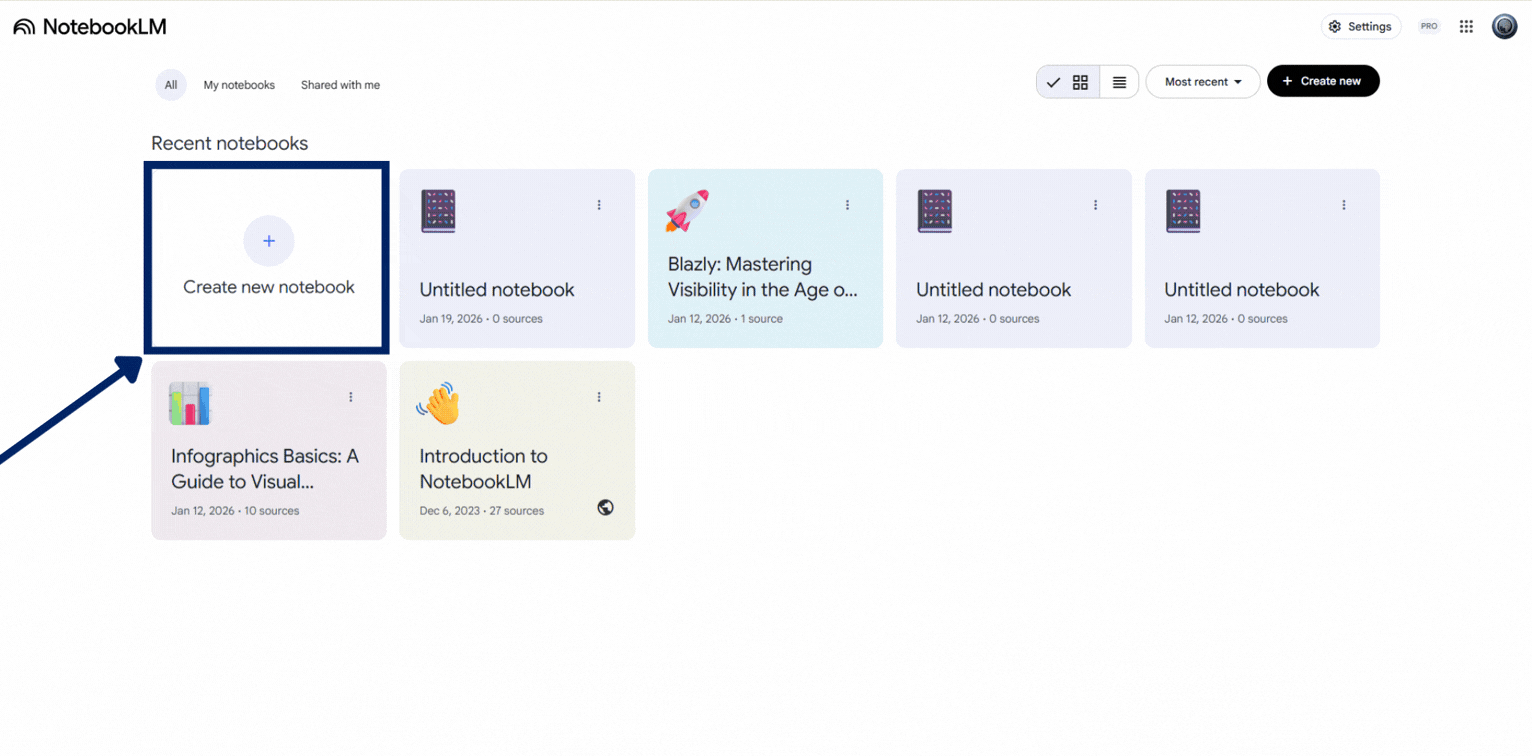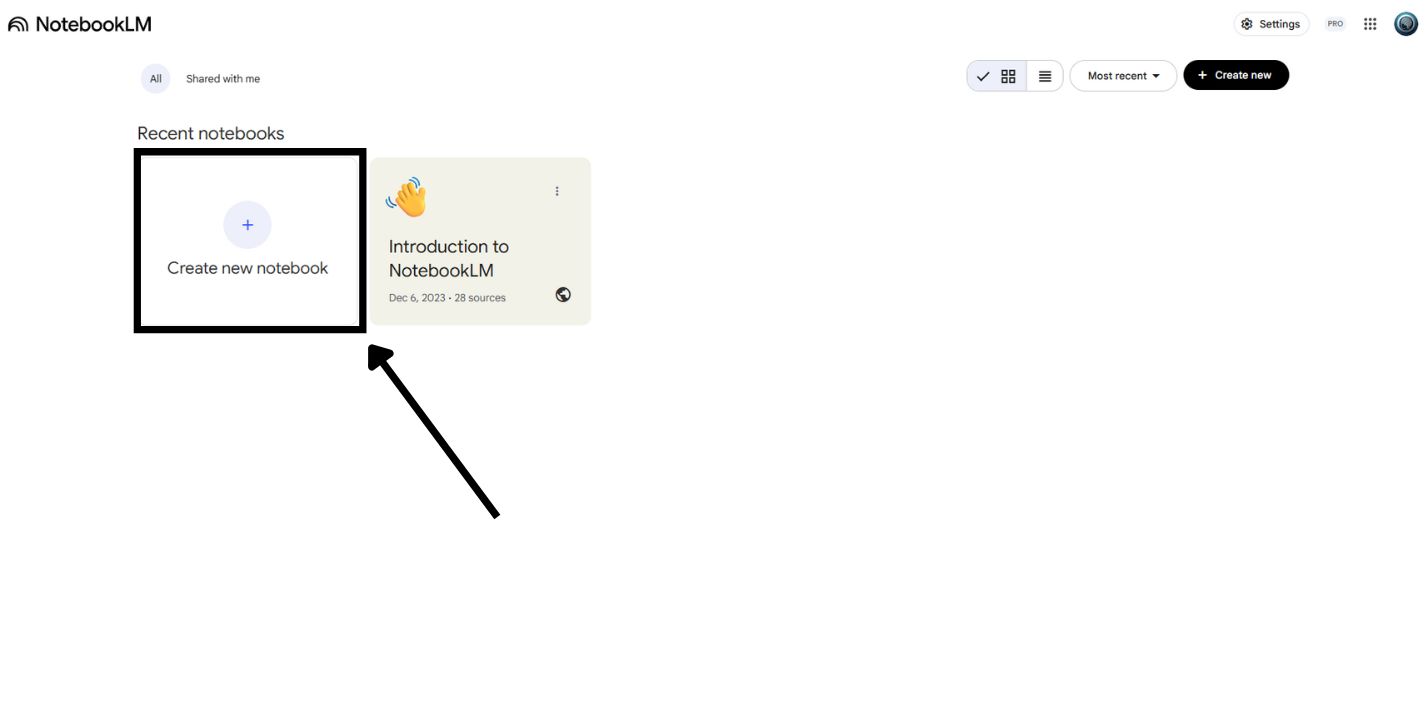 Open NotebookLM and click Create new notebook and choose Web → Deep Research.