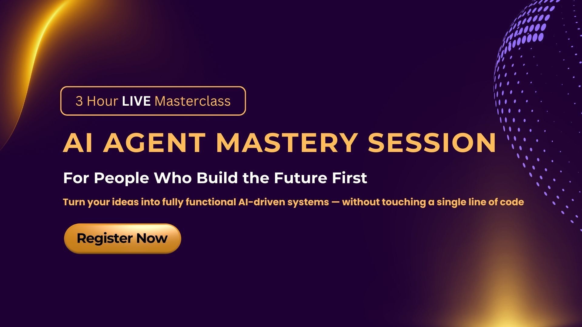 In this 3-hour AI Agent Mastery Session, we’ll show you step-by-step how to design, deploy, and automate AI systems that run entire workflows without you lifting a finger.